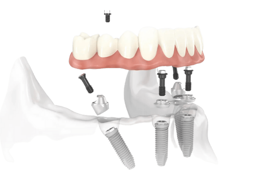 Pro Arch / All-on-4/ Teeth-in-a-day is a procedure to replace multiple missing teeth in your mouth. Four implants are surgically placed in the dental arch where the teeth are missing and a denture is then attached to it.